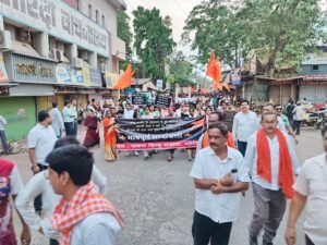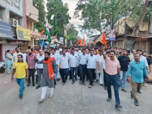 बुलंद गोंदिया। जम्मू कश्मीर के पहलगाम में पर्यटकों का धर्म पूछ कर 28 हिंदू पर्यटकों की आतंकवादियों ने अंधाधुंध गोलीबारी कर जघन्य हत्या कर दी थी जिसके विरोध स्वरूप गोंदिया में सकल हिंदू समाज द्वारा सामूहिक श्रद्धांजलि अर्पित कर आतंकवाद पर कड़ी कार्रवाई की मांग कर स्वयंफुर्ति से शाम 5 से 9:00 बजे तक बंद रखा व जनाक्रोश रैली निकल कर पाकिस्तान आतंकवाद के खिलाफ जमकर नारे बाजी की साथ ही 7:45 से 8:00 तक सभी प्रतिष्ठानों व घरों की लाइट बंद कर ब्लैक आउट किया।