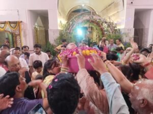 उमस भरी गर्मी में भी भक्तों का उत्साह नहीं हुआ कम