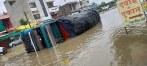 बुलंद गोंदिया। गोंदिया जिले में मंगलवार 20 सितंबर की शाम से शुरू हुई बारिश कहर बनकर टूट पड़ी है। जिससे पूरा शहर जलमग्न हो गया वह सभी छोटे बड़े नाले उफान पर आ चुके इसी के चलते न्यू लक्ष्मी नगरपरिसर के नाले में 20 सितंबर की रात 3:30 के दौरान दुपहिया सहित एक युवक नाले में बह गया। तथा सैकड़ों मकानों को क्षति पहुंची तथा रिंग रोड के अधूरे निर्माणाधीन मार्ग के चलते एक ट्रक पलट गया हालांकि इस दुर्घटना में जानमाल की हानि नहीं हुई।